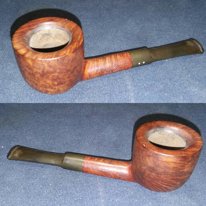 I’ve always been a fan of Sasieni pipes and there history. In fact the kick off to my estate refurbishing and collecting stated with a lot of pipes from a friends fathers estate. Included was nine or ten boxed smoked and Un-Smoked Sasieni two dot pipes. Many had the dreaded pink filler but a few I could never figure out why they were two dot and not four . I have two left in my collection , one Un-smoked Two Dot Oom Paul 80sxs with one small spot of filler and the one I’m writing about a thick walled, stubby Two dot 73. For life of me I cannot find one flaw, its been in the rack about three years now and with winter here I thought I could use a nose warmer.