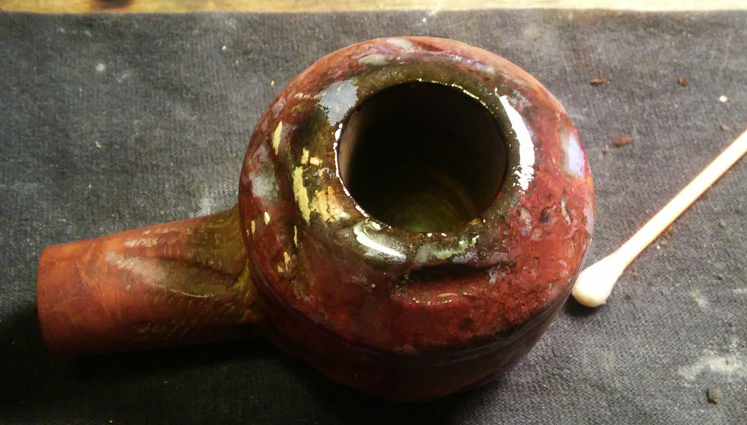 With the draft cleared it could now receive a retort . I cleaned the internals one last time after the retort with Q-tips, cotton swabs and stiff / soft pipe cleaners.