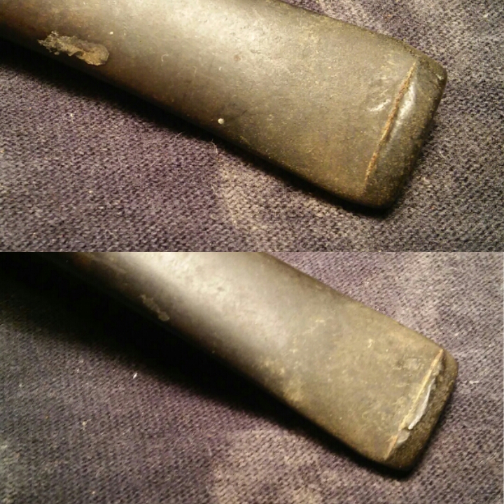The right side of the bowl and bulldog ring had spots where someone may have smacked the bowl against a hard surface to empty the chamber. I first attempted steaming out some of the dents. With no luck, I instead filled in the indentations with thick superglue and briar dust. I sanded the area with micro mesh until the repair was even.