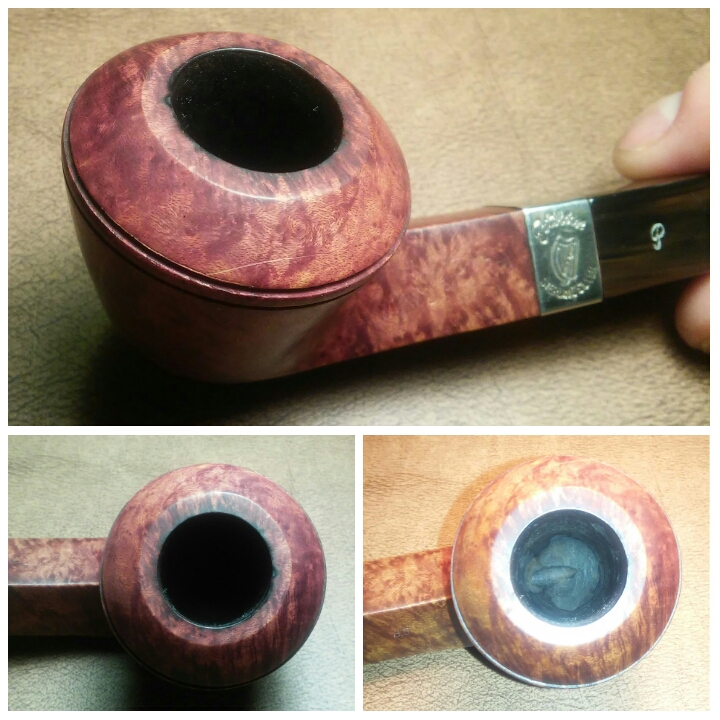 From what I could find via web/collector sites I believe this Pete is from 2007. ( please correct me if this info is wrong) With the addition of three more Peterson’s it has brought my collection to seven. The B.5 is one of many I’ve had my eye on, the smooth bulldog shape and fishtail stem made this comfortable not only in hand but also clenched in jaw. Lightly smoked and in decent condition just a few problem areas. A couple of tooth impressions, a scratch on the bowl and a burn on the rim that was deeper then first thought.