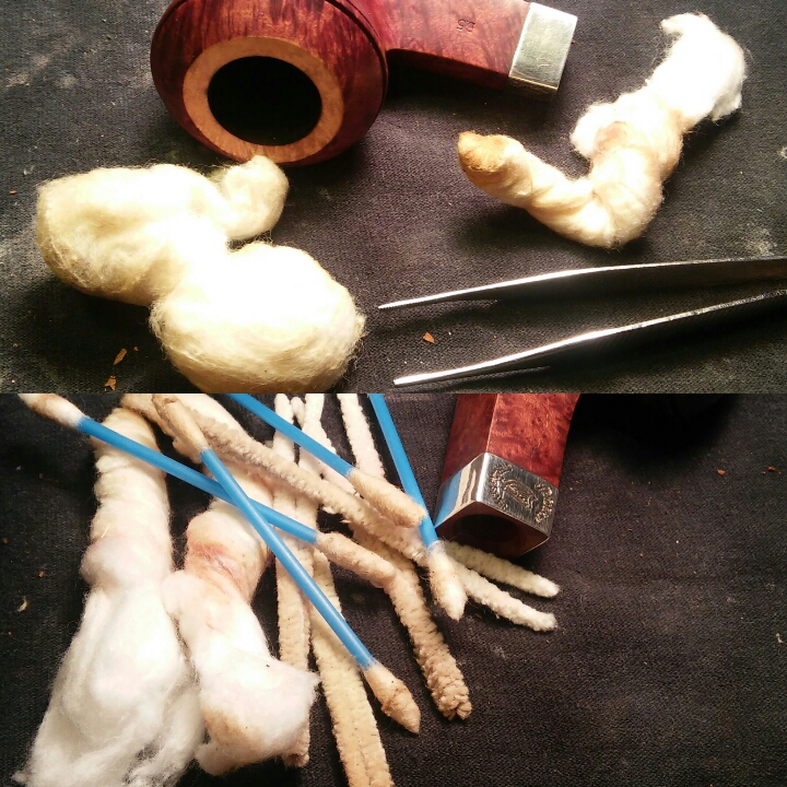 With the bowl set aside I began work on the stem first by cleaning the internals with EverClear, shank brush and pipe cleaners and worked until the pipe cleaners came as they went in. Then the externals I worked carefully around the P on the stem so it would not accidentally be removed by the alcohol.